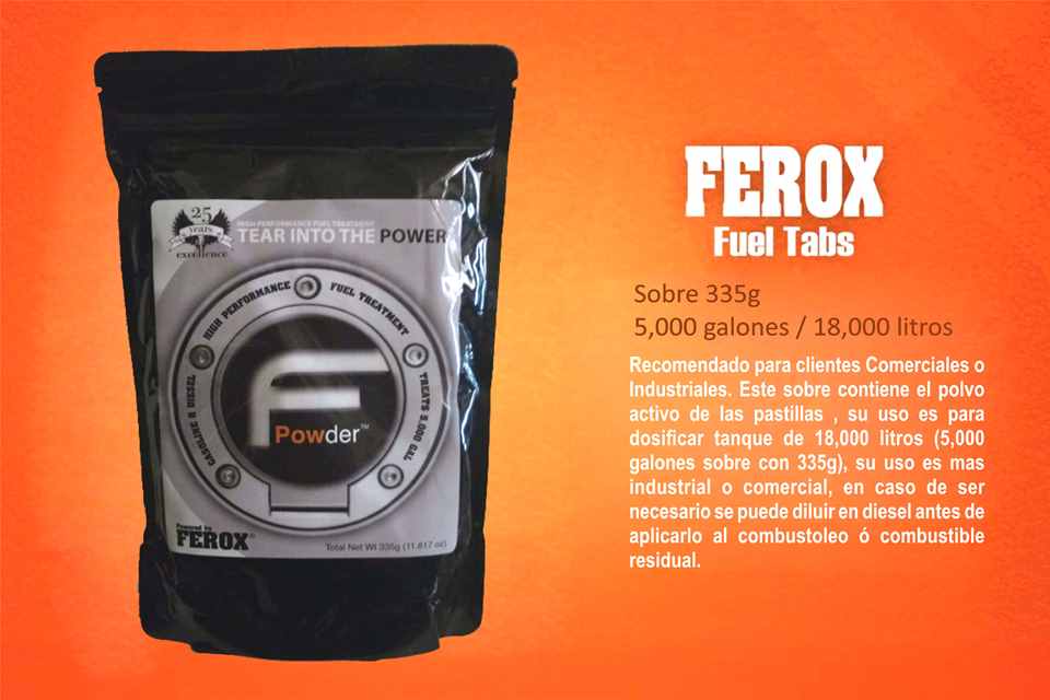 A. Chemically all FEROX products work the same way. Ferox used in liquid 230 appears to be cheaper, because the dehydration process to convert liquid powder and then in tablets, somewhat increases the production cost. This small cost is offset because the new presentations in powder or tablets, to be solid products are safer, easier to store, transport and dosing.